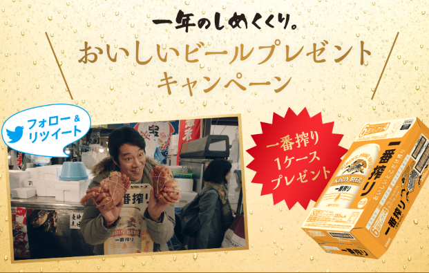 キリン一番搾り生ビール1ケースを抽選で100名様にプレゼントいたします。